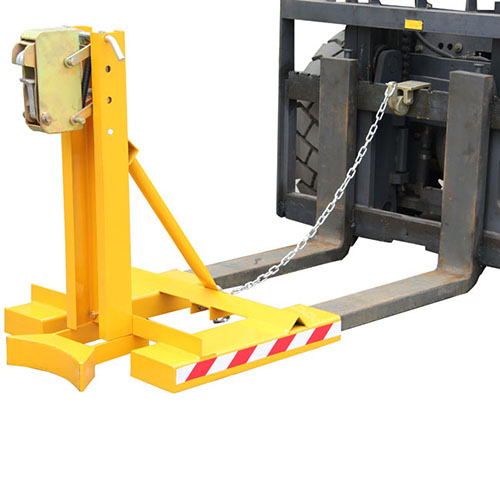 ? 純機械結(jié)構(gòu)設(shè)計的輕型單鷹嘴油桶夾具可與叉車方便地配合,僅依靠叉車的動作,不需其他動力,可自動一次搬運1個桶。